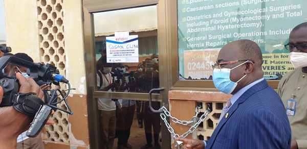 The health facilities closed down are Susan Clinic at Latebiorkorshie, China recovery clinic at Achimota, Grace Diagnostic Center at Tantra hill and Obengfo hospital at Weija.