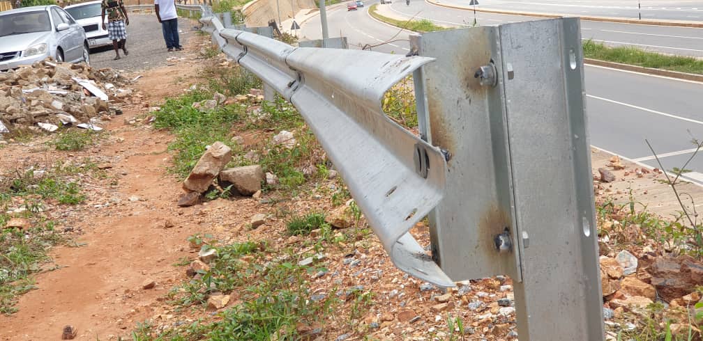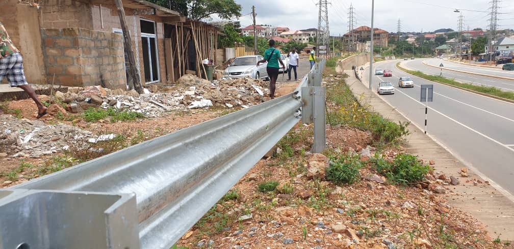 The barriers in question are mounted on a cliff to prevent vehicles using a service road from the Victoria College area at Pokuase from falling over from a height of about three metres onto the road from Kwabenya towards the main interchange.