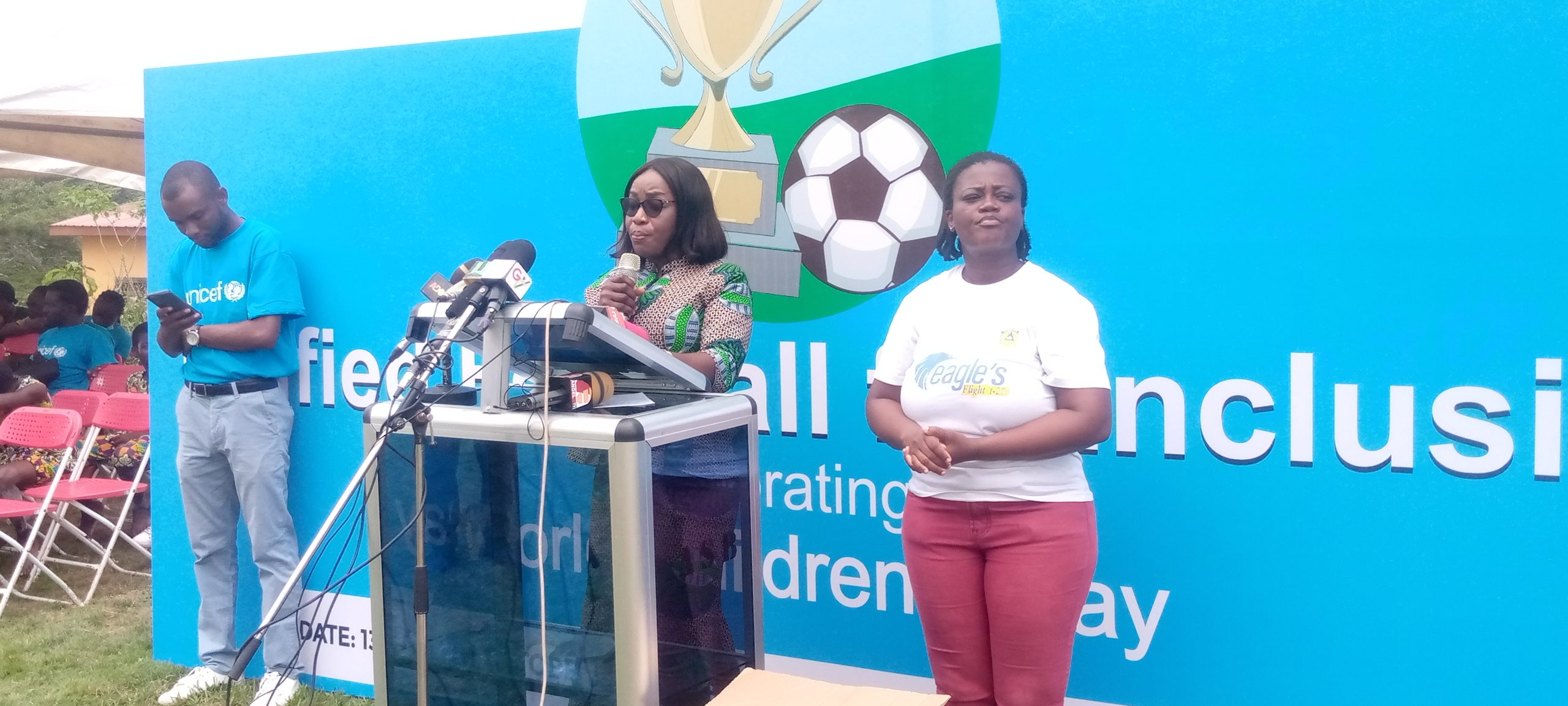 Speaking during the Unified Football for Inclusion Tournament for persons with disabilities organized by UNICEF at Akropong in the Akuapem North Municipality of the Eastern Region in order to mark this year’s World Children’s Day, Madam Atuluk noted that the Sports Ministry is working hard to ensure inclusion and non-discrimination at all sporting activities and other programmes.