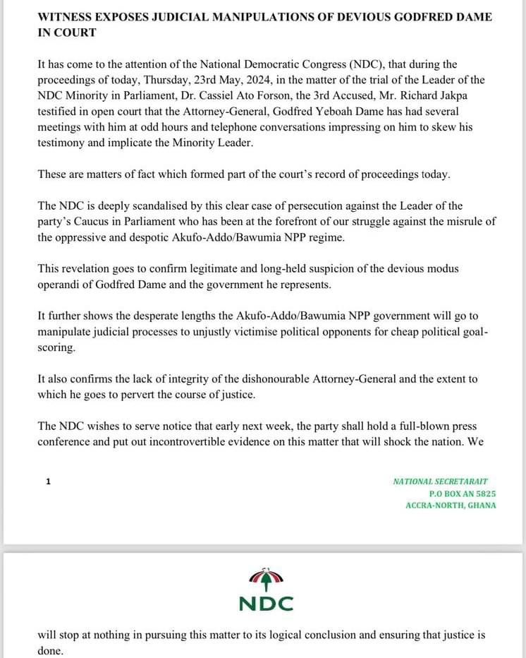 For the record, the Office of the Attorney-General and Ministry of Justice categorically denies the allegations and insinuations of the NDC.