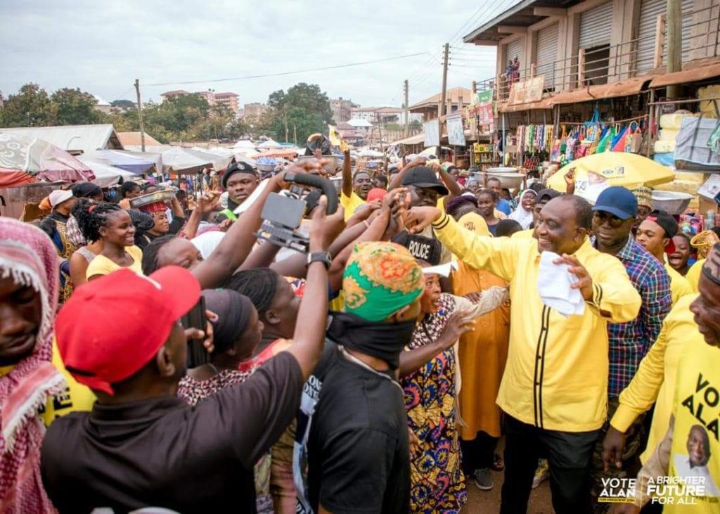 As part of his campaign tour, Alan Kwadwo Kyerematen, an independent presidential aspirant made a stop in Sunyani to engage with market women and the broader community.