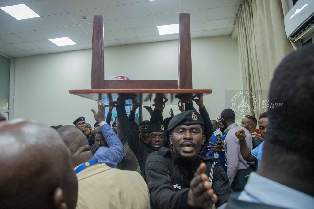 The dispute soon escalated into a physical altercation, with committee members reportedly dismantling tables and disconnecting microphones in an attempt to derail proceedings.