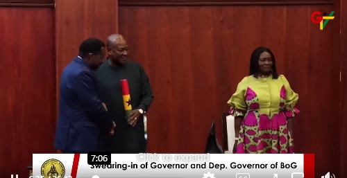 President John Dramani Mahama has sworn in Dr. Johnson Asiama as the Governor of the Bank of Ghana and Dr. Zakaria Mumuni as his Deputy.