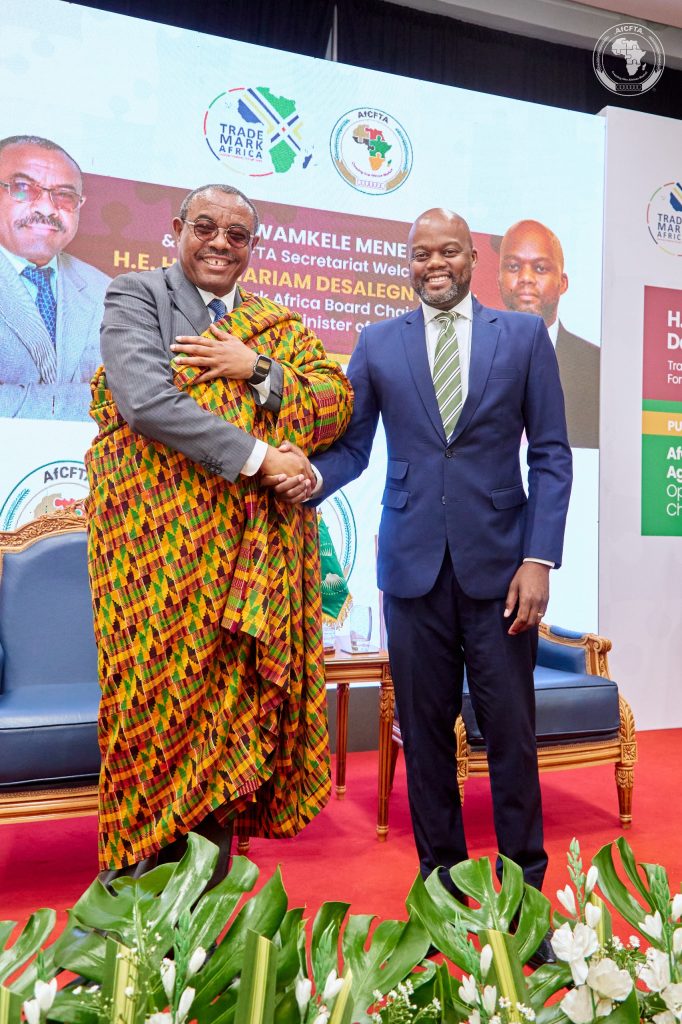 The Secretary General of the African Continental Free Trade Area (AfCFTA), Wamkele Mene, hosted former Ethiopian Prime Minister Hailemariam Desalegn at the AfCFTA Secretariat in Accra for a lecture on “AfCFTA as a Catalyst for Agenda 2026.” The event also marked the signing of an agreement between AfCFTA and Trademark Africa.