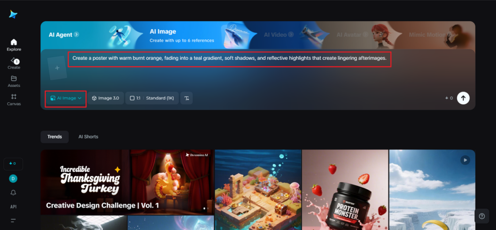 It’s not just science-color echo is an art. Artists and designers create afterimages on purpose, using hue combination, transparency, and texture to evoke emotion. Dreamina’s AI art generator lets you explore these subtleties in ways that used to be tedious.