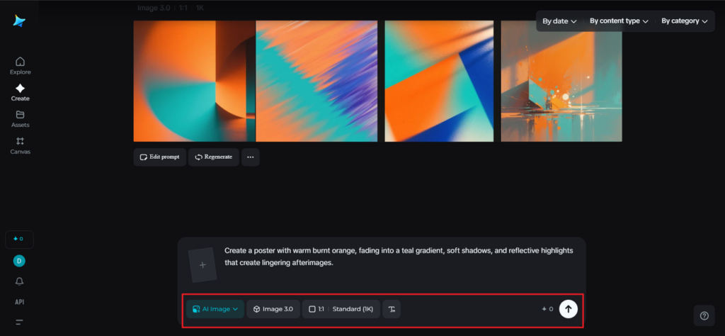 Select the model, aspect ratio, and size and resolution-1K or 2K, depending on the design being intended for digital purposes or a printed version. Click Dreamina’s icon and generate an image. Just like that, your color echoes appear and come to life on screen-you can also run a few through iterations to see which gradient seems to last on screen the longest.