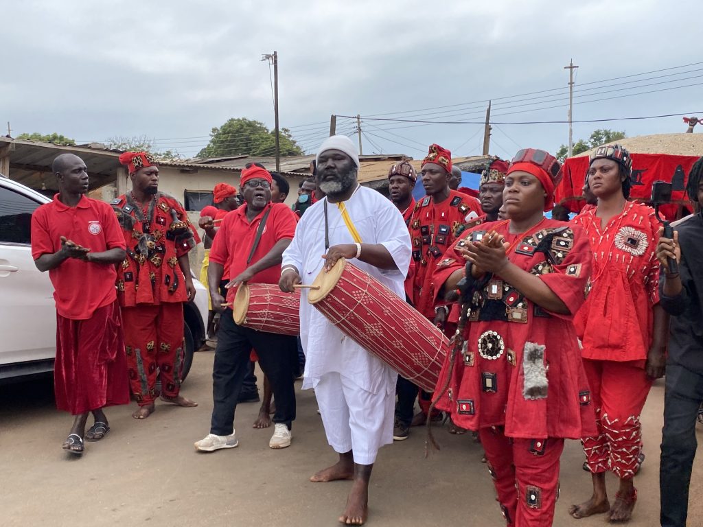 The Ohenease traditional rites, which climax the celebration, involve a slow march through some streets of the Nungua township, amid traditional drumming and singing, towards the Royal Mausoleums. Here, Kpokpoi is sprinkled on the tombs of late chiefs, after which the Chief ascends his royal palanquin to greet his people.