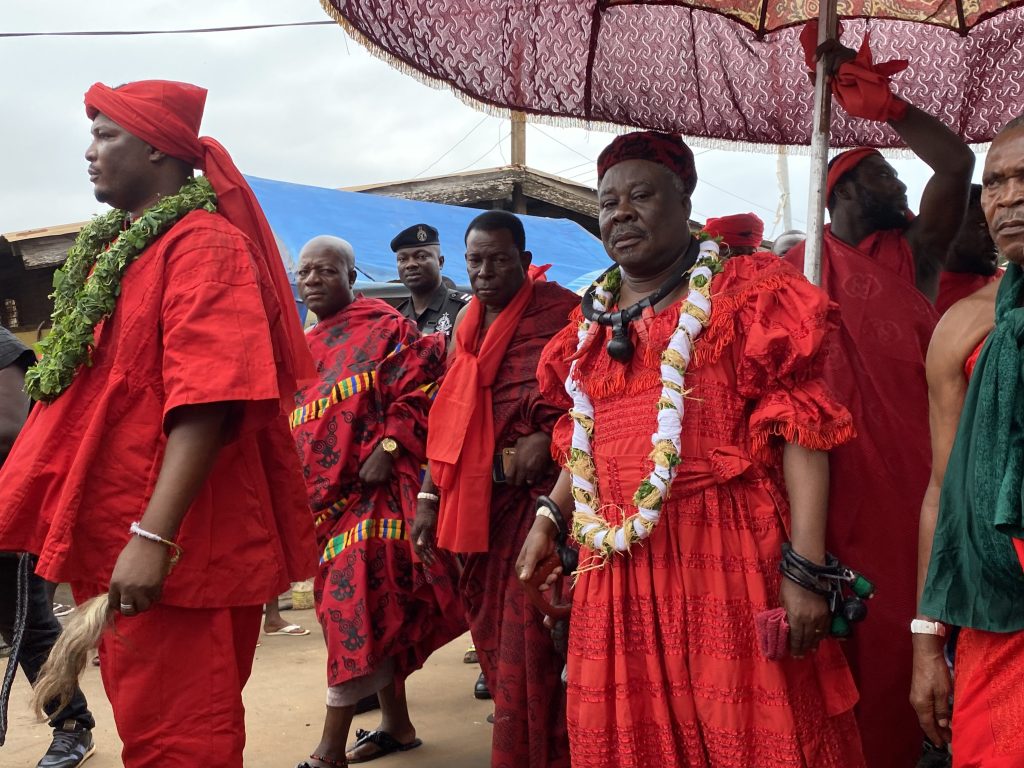 The paramount chief of Nungua, Nii Odaifio Welensti, flanked by sub-chiefs and opinion leaders, led the solemn march from the Nungua palace to the Odaitei Tse We, Mantse We, Nii Adjin We, and Nii Moi We to perform the rites. The traditional rite was marred by confusion two years ago when the youth of Nungua Amanfa stopped the Nungua Manse, Odaifio Welensti, from riding in a palanquin through Nungua Old Town.