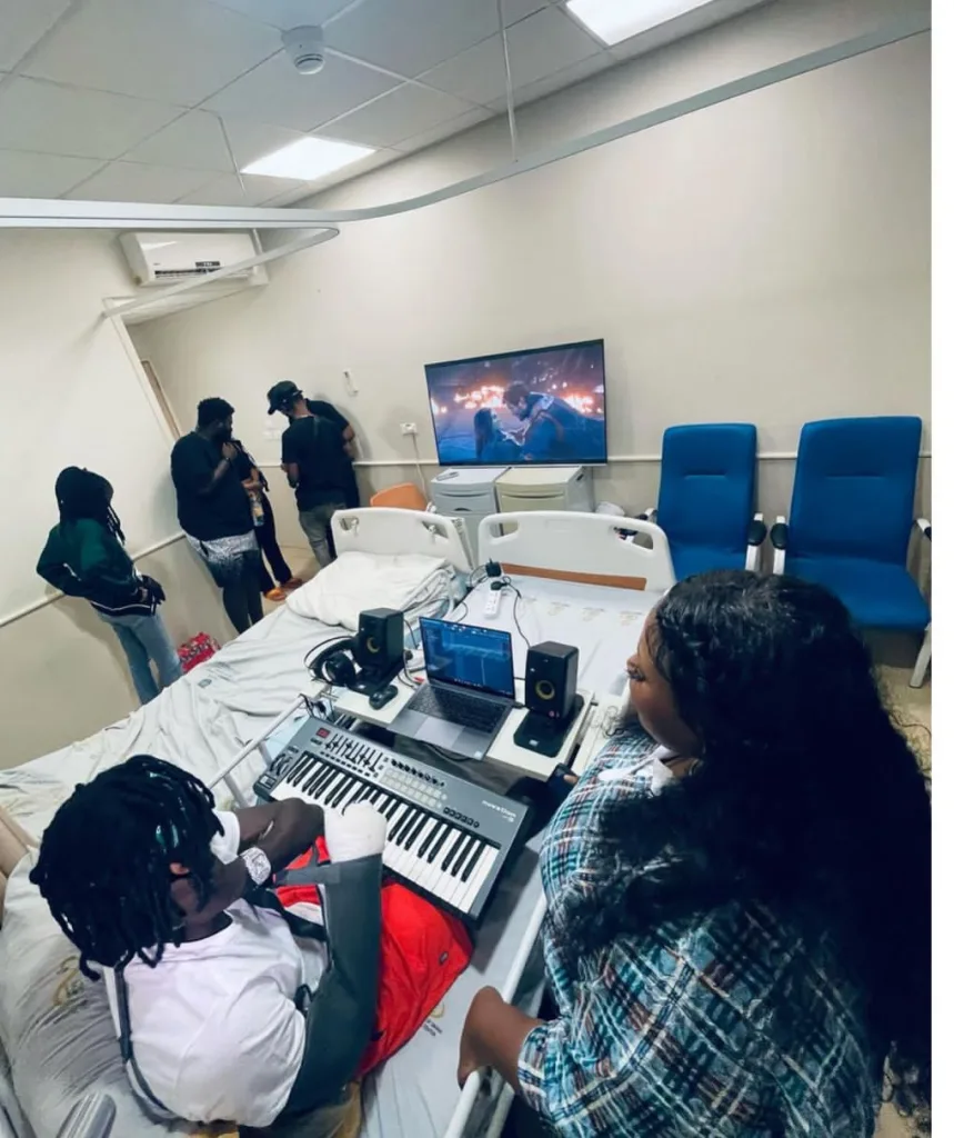 The Musician who has been at the University of Ghana Hospital receiving treatment since his accident got fans worried about his condition.