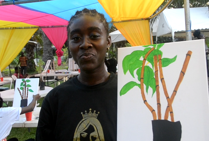“It’s something we do every Sunday at the Department of Parks and Gardens, where we bring together people, families, hobbyists, individuals, workers, colleagues, and friends, to come and have an exciting painting adventure in the garden. It is also to encourage Ghanaians to fall in love with gardening and with plants. You see, we have a lot of trees. We were born in trees, but then what is happening is that people are killing the trees, and then we are cutting down trees and buildings with nothing like that, and it’s affecting the climate. So there is a problem with climate change and if you tell people to just plant trees, they will not. So what we want to do is connect people through painting to fall in love with nature, to learn how to plant, set up small gardens all over the house and all over the country, so that we will help fight climate change.”