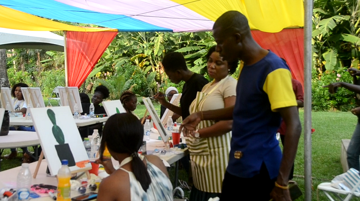 “We are stressed, a lot of people are worried. There is too much pressure in town, and painting is something that helps you relax, reduce pressure, and it’s a form of meditation for a lot of people. And it helps with your creative thinking and problem-solving skills. So ‘Paint in the Garden’ is achieving the first objective of giving people in Ghana, all over Accra, an opportunity to have a very wholesome, relaxing, and healing experience on Sundays before the week starts or after a very difficult week.”