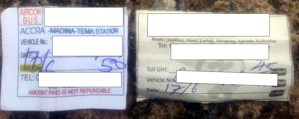 Fare changes were verified using pre-May 24 records, the official Ghana Private Road Transport Union (GPRTU) directive, and documented fare receipts from intercity transport routes.