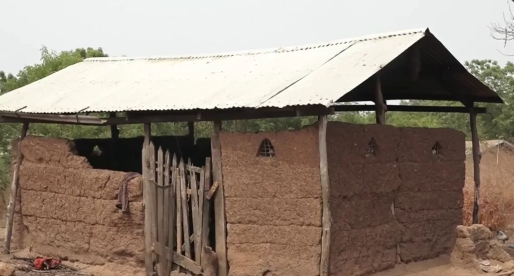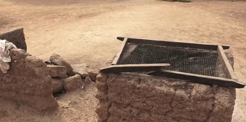 When our news team visited, many homes, mostly mud houses, had been washed away by floods. Like several others, this bathroom is a make-shift one that has replaced a collapsed one.