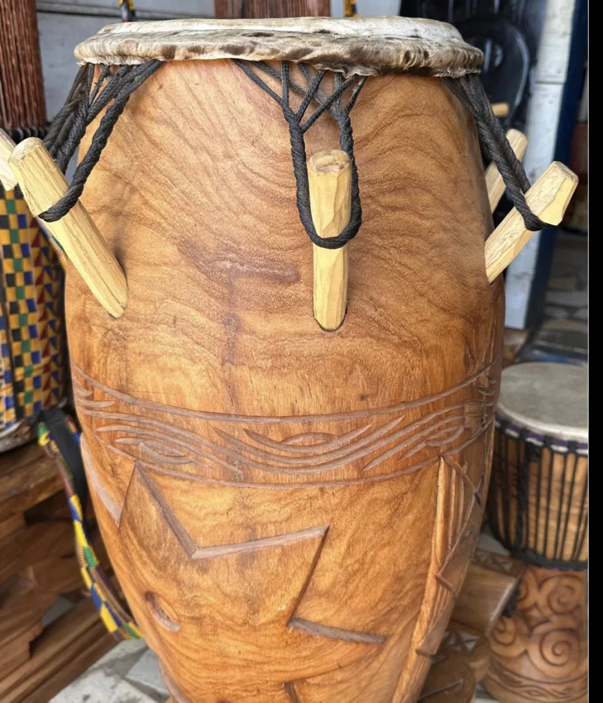 Traditionally crafted with care and attention to detail, these drums hold deep cultural significance and are integral to various aspects of Ghanaian society. They resonate with the heartbeat of the nation, pulsating with energy during festivals, installations of chiefs and queens, and school anniversary celebrations.