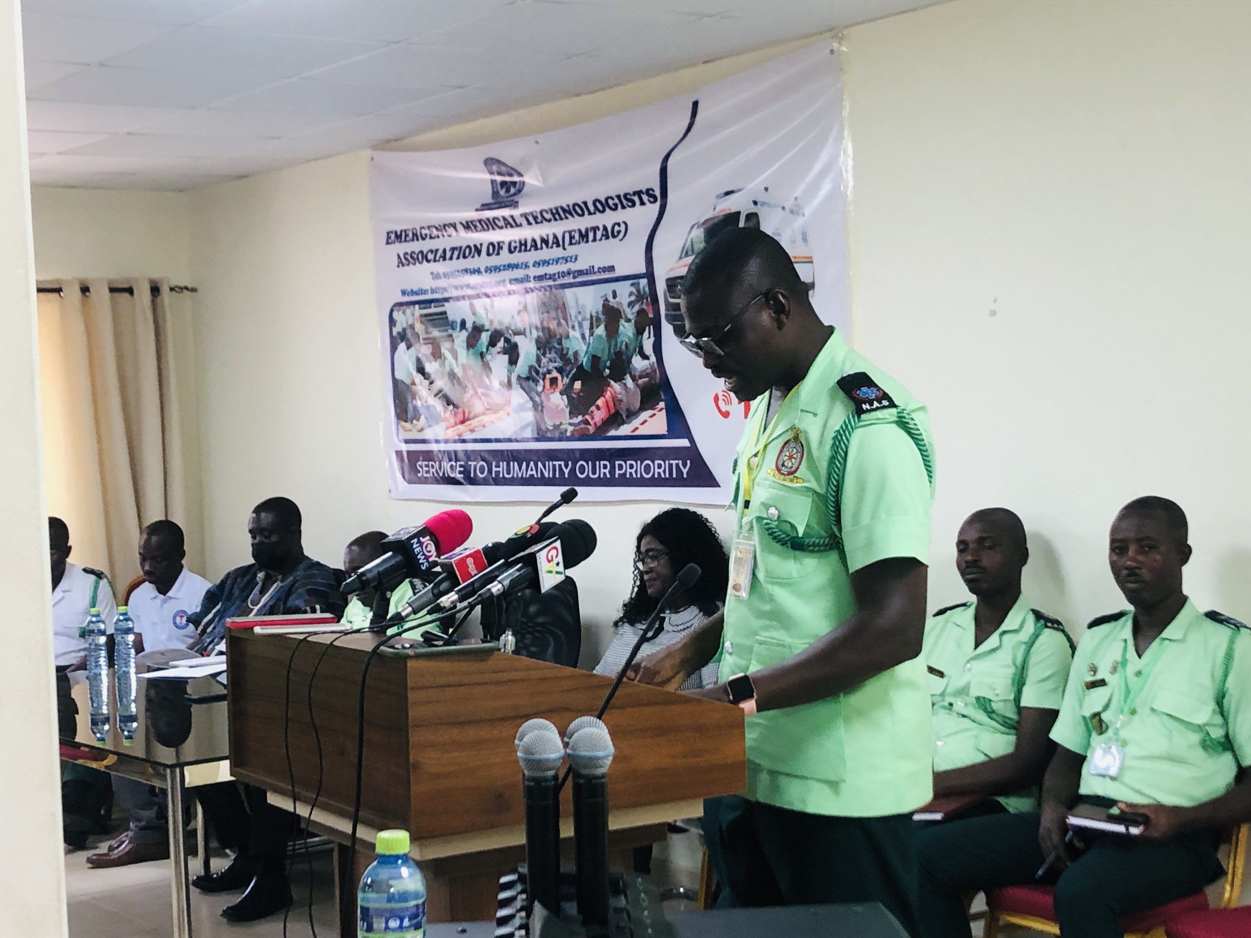 The leadership of the Emergency Medical Technologists Association of Ghana EMTAG, under the umbrella of the National Ambulance Service, NAS, raised issues affecting some of its members in the discharge of their operational duties. According to them, the lives of its members have been under threat emanating from the incessant attacks either by armed robbers or some section of the public, while fulfilling their mandate as Prehospital Emergency Medical Care Providers. This situation has put the members and their families in a state of fear and despair anytime they are in duty.