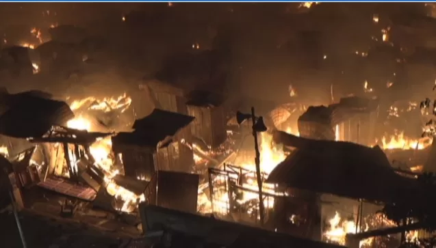 About one hundred and fifty wooden structures have been destroyed in a fire outbreak at Mensah Guinea, a settlement behind the Arts Centre in Accra.