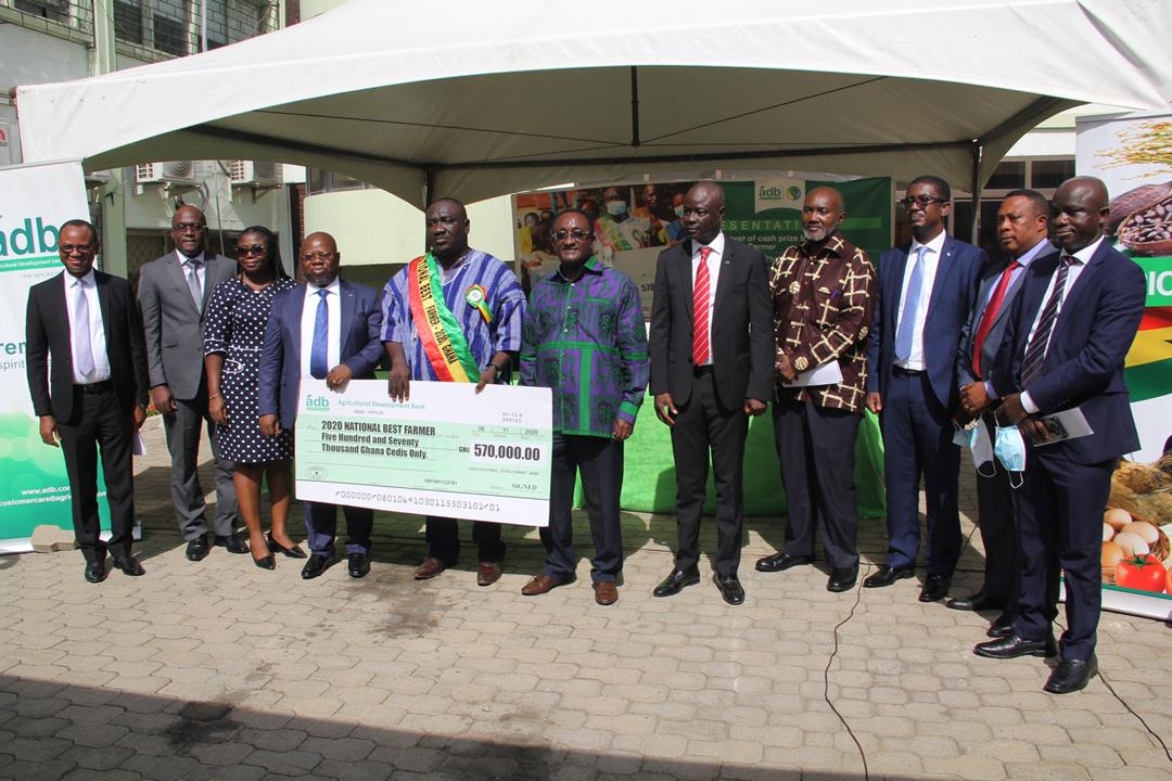 The Agricultural Development Bank (ADB) has presented a cheque for Five Hundred and Seventy Thousand Ghana Cedis (GHC570, 000.00) to Mr. Solomon Kwadwo Kusi, the 2020 National Best Farmer.
