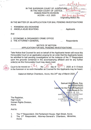 Their lawyers contend that the bail demands—GH¢120 million for Adu-Boahene and GH¢80 million for his wife—are excessive and appear to be an attempt to bypass constitutional limits on detention without trial. They argue that these conditions effectively extend their clients’ detention beyond the legally allowed 48-hour period.