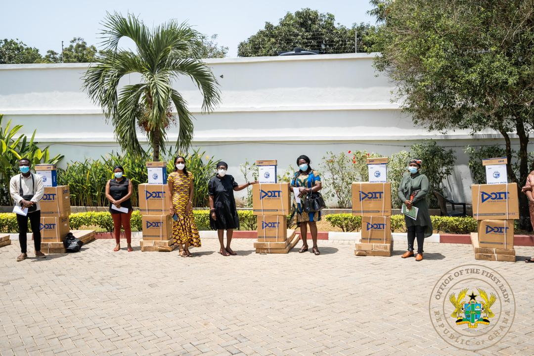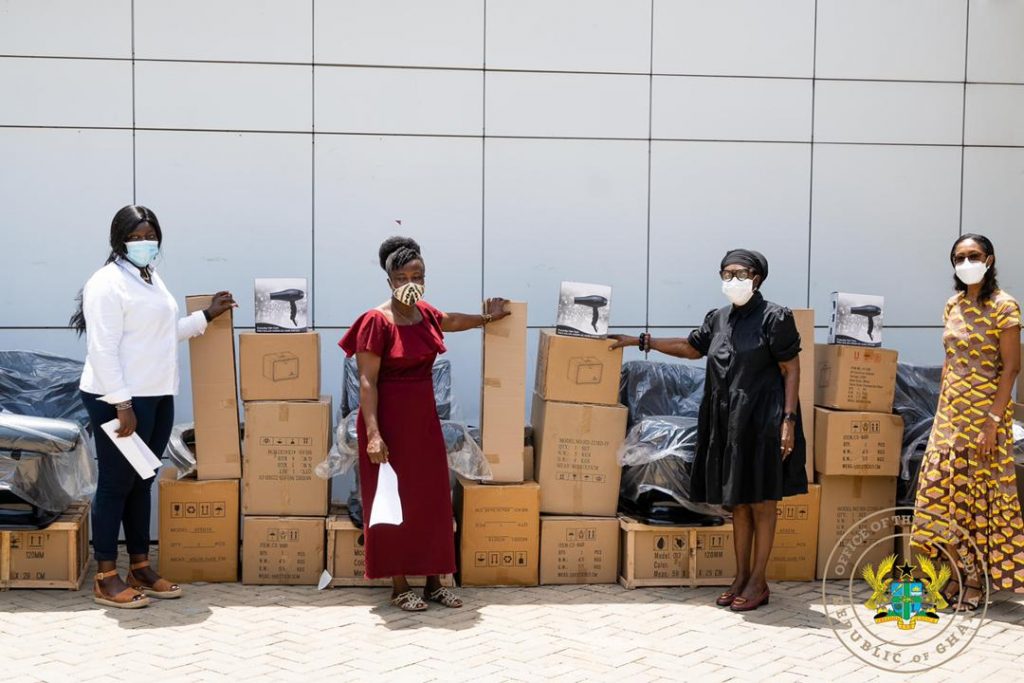 First Lady of the Republic, Mrs. Rebecca Naa Okaikor Akufo-Addo has presented working tools to some selected artisans, at her Ridge Office in Accra.