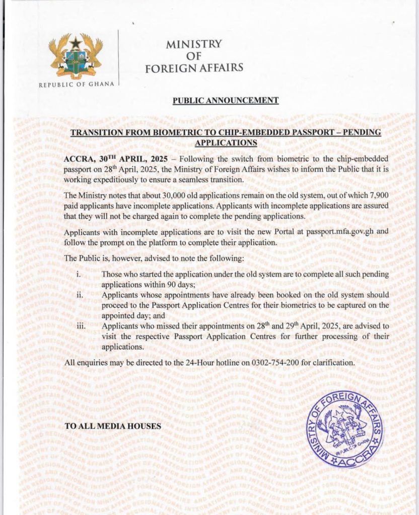 The Ministry clarified that out of these pending applications, about 7,900 applicants with incomplete applications are required to visit the new passport portal at passport.mfa.gov.gh and follow the provided procedure to complete their application process. It assured these applicants that they will not be charged again to finalize their pending applications.