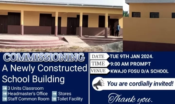 A news report of GBC’s Radio Ghana early last year has resulted in the construction and commissioning of a fully-furnished three-unit classroom block for pupils of Kwadwo Fosu D/A Primary School in the Ayensuano District of the Eastern Region.