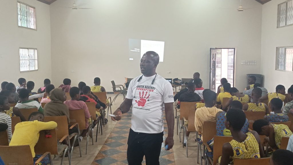 During the engagement, the students were sensitized on the concept of corruption, its adverse effects on society, and the importance of upholding transparency and accountability. They were also introduced to key legal instruments such as the Whistleblower Act, 2006 (Act 720)and the Witness Protection Act, 2018 (Act 975), which provide avenues for reporting corrupt practices and ensuring the safety of individuals who expose wrongdoing.