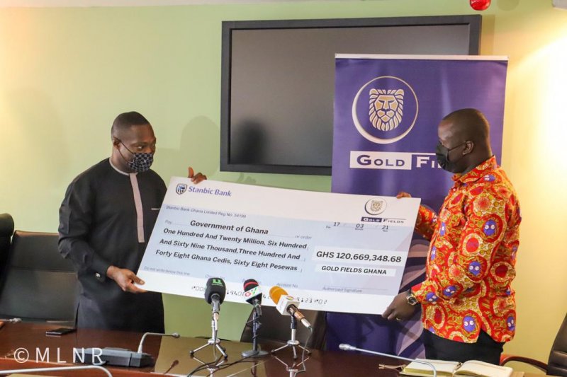 Executive Vice President and Head of Goldfields West Africa, Mr Alfred Baku, presented the cheque to the Minister of Lands and Natural Resources, Mr Samuel Abu Jinapor, at a brief ceremony, in Accra.