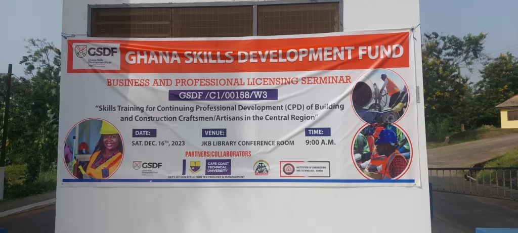 The Cape Coast Technical University through the Ghana Skills Development Fund is providing skill training for a hundred artisans including a woman for continuing professional development of building and construction craftsmen and artisans in the Central Region (C/R).