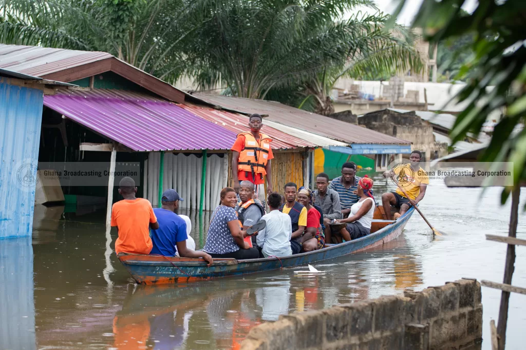 The National Disaster Management Organization (NADMO) in Ghana has been collaborating with other groups to evacuate hundreds of people who have been trapped in their homes due to flooding.