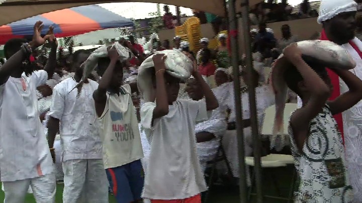 The annual ŋshɔbulemɔ is performed to pacify the sea gods to provide fish for the celebration of the annual kplejoo festival. During this rites, the Chief fisherman sends fishermen on a special fishing expedition on the Wednesday preceding the day of the rites.