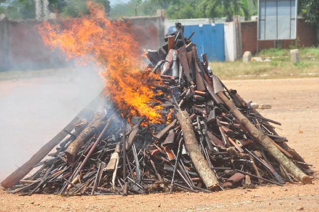 Speaking at a ceremony before the incineration of these weapons, Executive Secretary for the Commission, Jones Applerh said about 89.5% of the weapons seized were foreign-made.