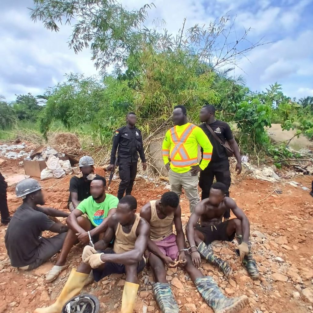 At Akrokerri in the Ashanti Region, the Ashanti South Regional Police Command arrested nine individuals in connection with illegal mining operations.