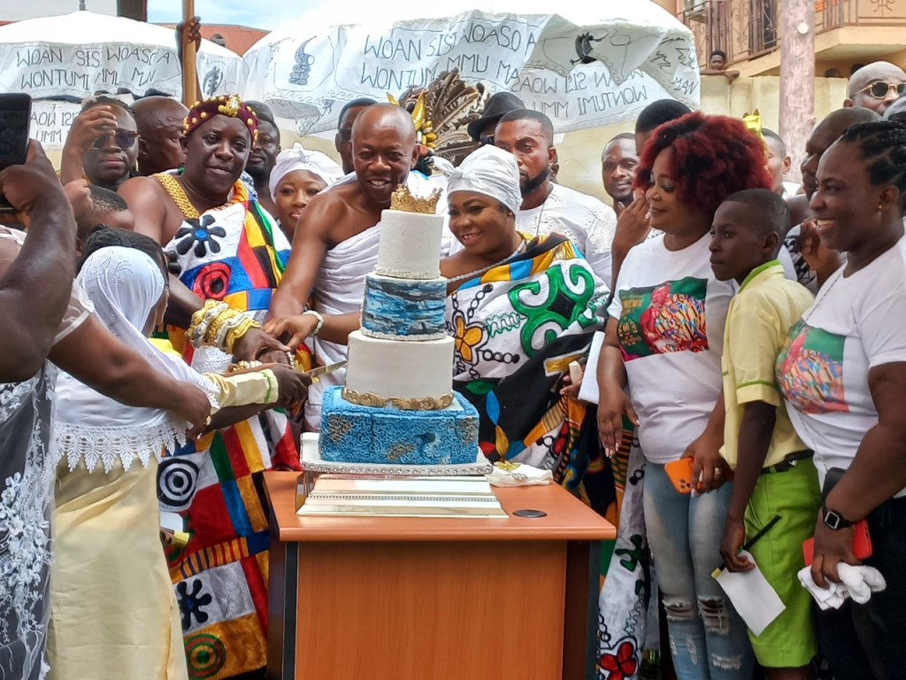 Highlight of the event was the cutting of the 60th Anniversary cake by Nana Adusei Atwenewa Ampem and presentation of a cow and an undisclosed amount of cash by the MP for North Tongue, Mr. Samuel Okudzeto Ablakwa, who happened to be the Youth Chief of Tepa, to the Paramount Chief.