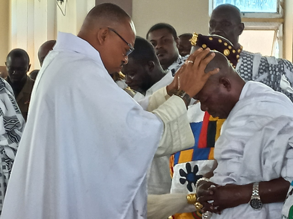 The Presiding head of the Mary Queen of Peace Catholic Church, Father Theophilus Acheampong Prepra, prayed for God’s direction, wisdom, health, and long life for the Paramount Chief and his elders, saying the reign of Nana Adusei Atwenewa Ampem has brought numerous development projects to the Tepa Traditional Area.