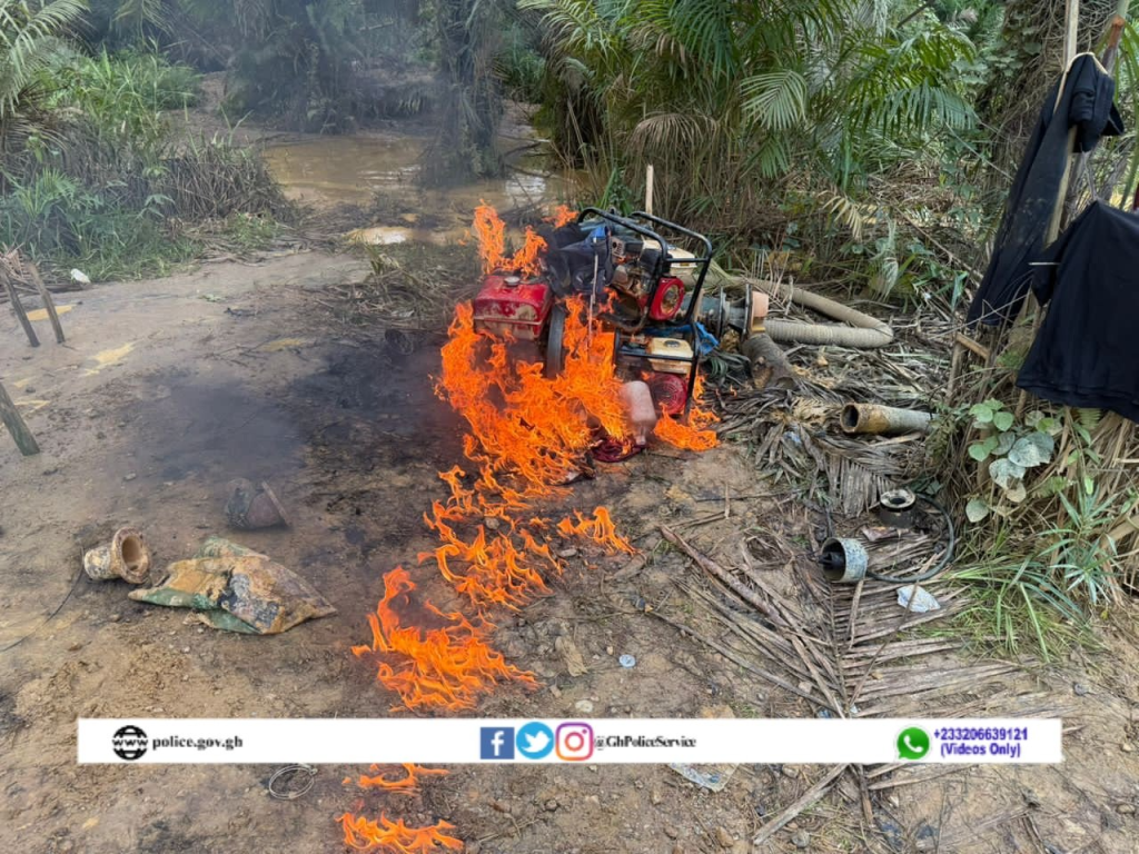 The Western Regional Police Command, acting on intelligence, carried out the raid on multiple illegal mining sites in the area. The operation led to the arrest of the suspects and the seizure of a number of mining-related equipment.