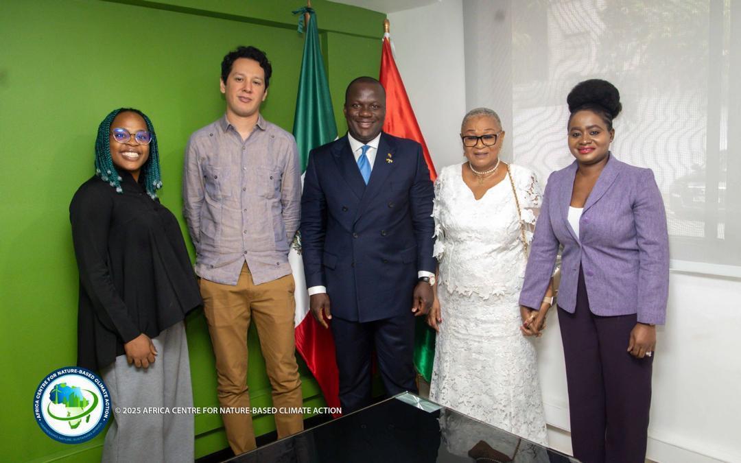 A delegation from the Africa Centre for Nature-based Climate Action (AC4NCA) paid a courtesy visit to the Embassy of Mexico in Accra. The purpose of the visit was to officially introduce the Centre, share its vision, and initiate dialogue towards potential collaboration between Mexico and AC4NCA in the fight against climate change.