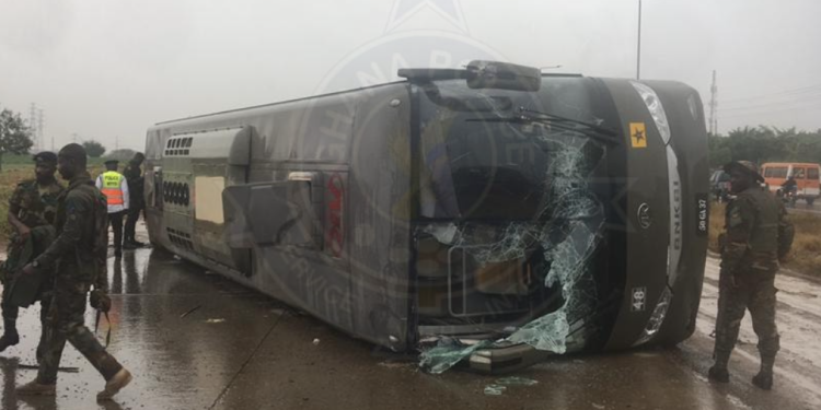 A bus believe to belong to the Ghana Armed Forces (GAF) has been involved in an accident on the Accra-Tema motorway.