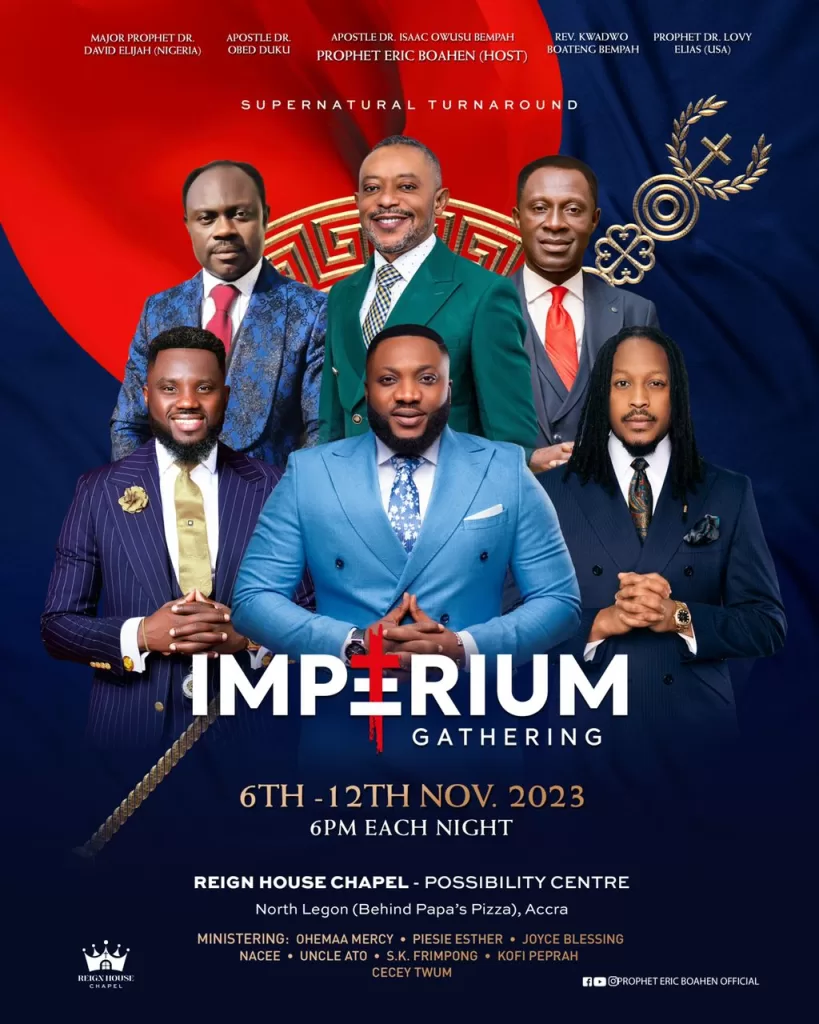 The spiritual and peaceful atmosphere in Ghana is set for an electrifying one as Head Pastor of the Reign House Chapel, Prophet Eric Boahen Uche, presents the inaugural “Supernatural Turnaround” IMPRERIUM GATHERING 2023 Conference.