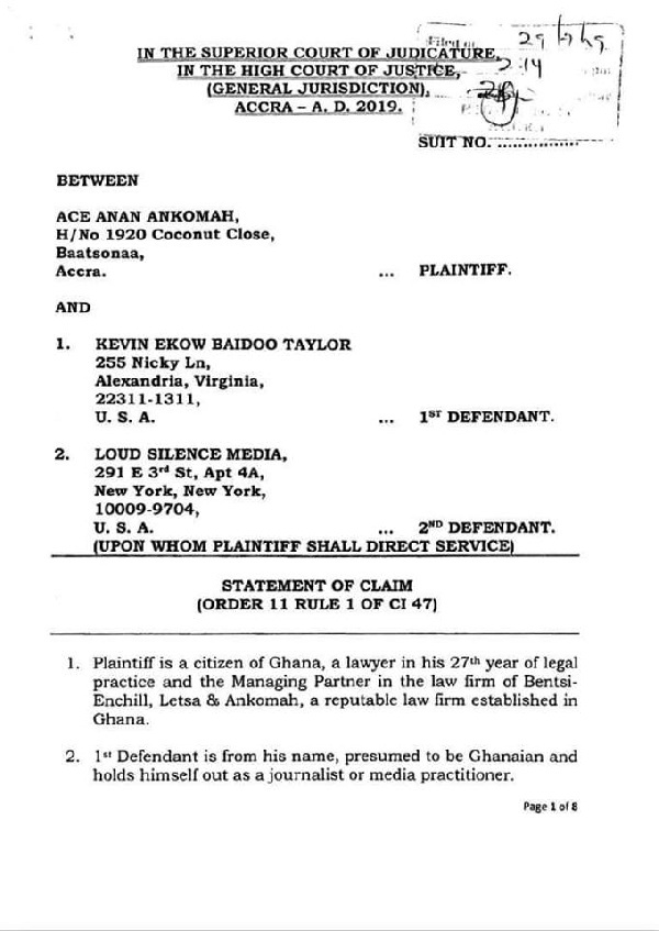 Mr Ankomah had sued Taylor and his firm, Loud Silence Media and demanded GH¢10 million as damages for dragging his name in the mud.