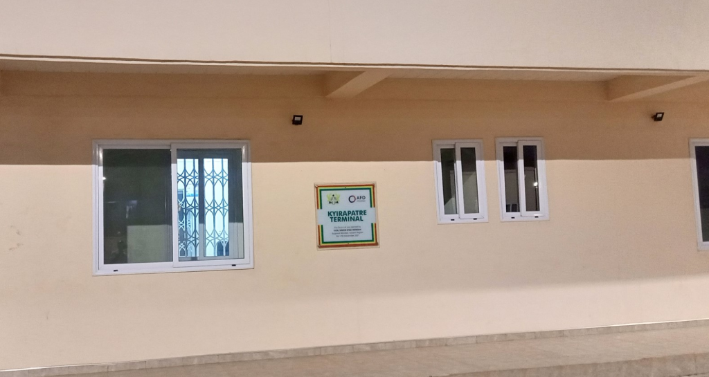 Mr. Lecas(Left), Mr. Gyimah(middle) and Mr. Cottet(right) admiring the modern terminal at the Dompoase Junction during the inspection.