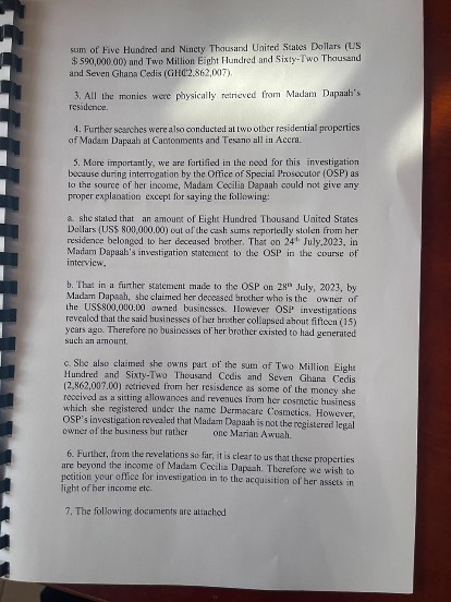 “…More importantly, we are fortified in the need for this investigation because during interrogation by the OSP as to the source of her income, Madam Cecilia Dapaah could not give any proper explanation,” the petitioners argued.