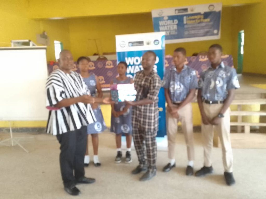 Dr Abungba presenting prizes to the schools that participated in dialogue on water conflict management.
