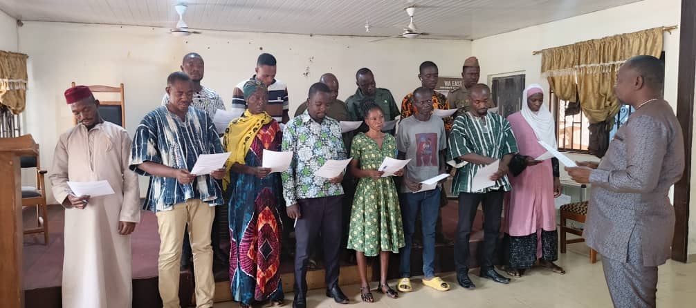Dr Joachim A. Abungba swearing-in members of the Wa East LWC at Funsi.