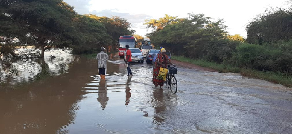 The road between Busunu and Daboya has been cut off by floodwaters after a downpour on Saturday, September 11, 2021.