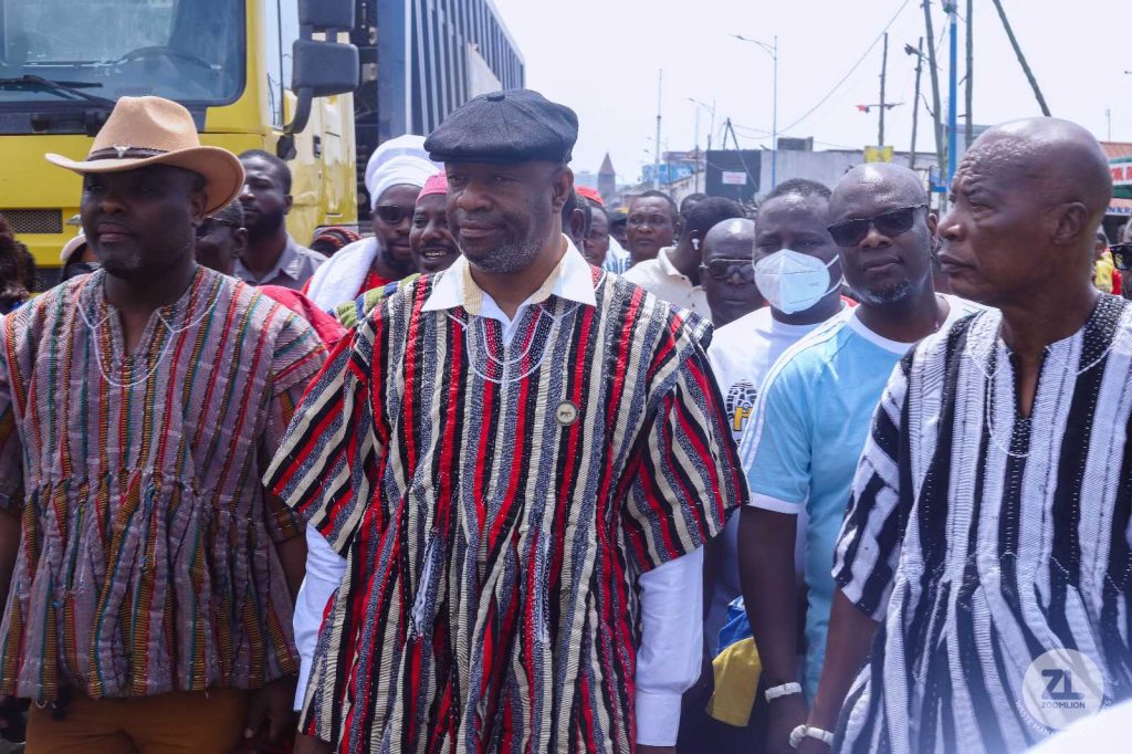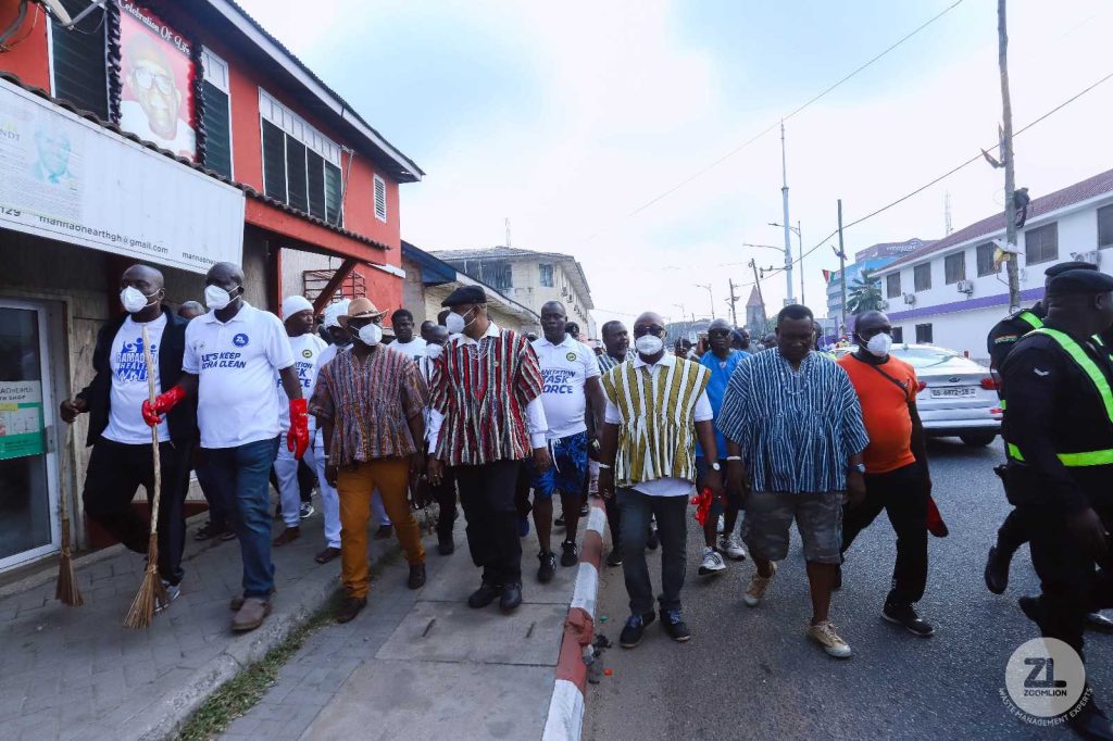 The Ga Mantse King Tackie Teiko Tsuru and the Greater Accra Regional Minister Daniel Nii Titus Glover led residents of Ga Manshie for the Howomo clean-up exercise initiated by the Ga Mantse ahead of the Homowo celebration on Tuesday, July 2.