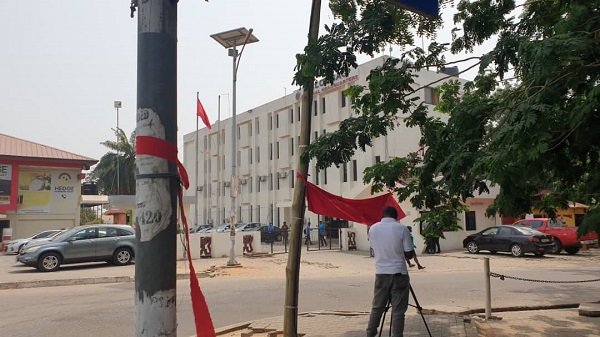 Almost all vehicles and door handles within the premises of CLOGSAG had red cloth tied to them, with a bold inscription on the door of the main entrance to CLOGSAG announcing the strike, accompanied by a summary of its demands which reads “WE DESERVE BETTER CONDITIONS OF SERVICE NOW, EVERYBODY SHOULD SIT AT HOME, DON’T COME TO WORK”.