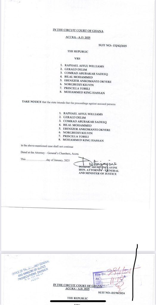 This decision, filed under nolle prosequi—a legal term meaning the case will no longer be pursued—was presented to the Circuit Court in Accra in January 2025. It means that all accused persons are now free, bringing the legal battle to an end.