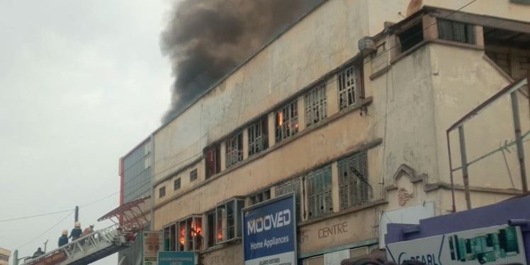 GBC News’ Reporter, Juliet Mettle Edmonds, who was at the scene reports that the fire is believed to have emanated from a welding activity at the Shop located at Opera Square in Accra.