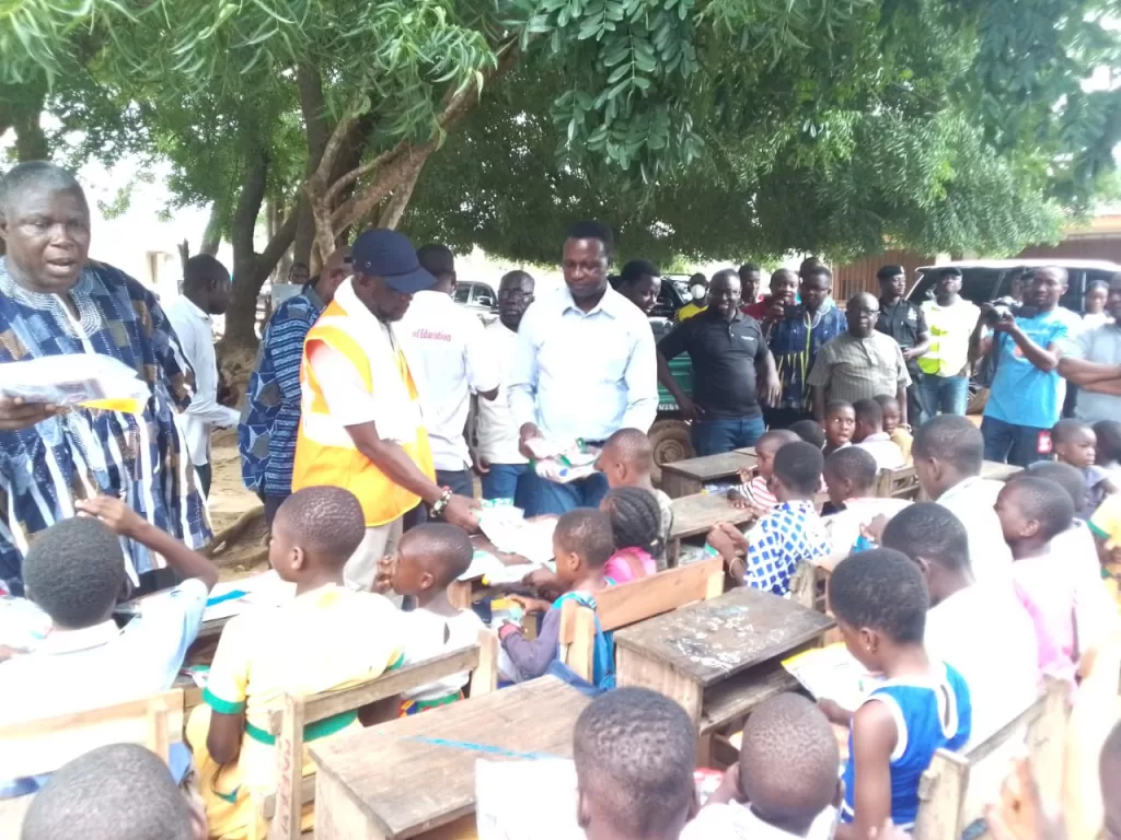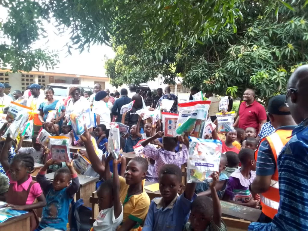 Mr. Osei Adutwum donated some educational materials for the pupils at the centre. He also presented over 400 bags of rice to teachers who have been affected by the disaster.
