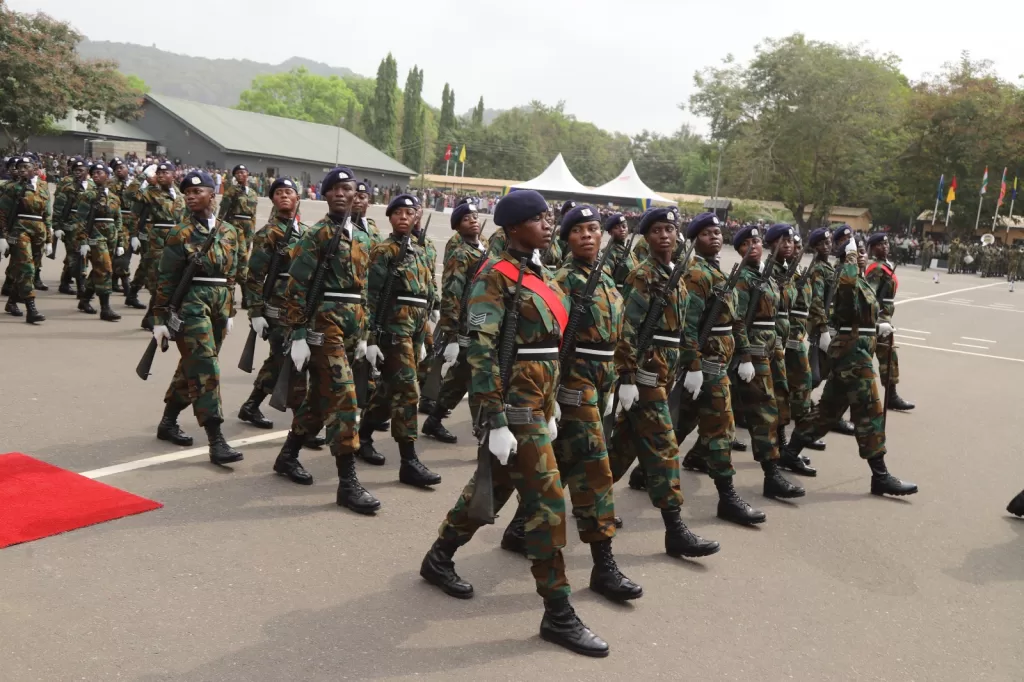 On August 4, 2023, 833 recruits reported at the basic infantry training school at Shai Hills in Accra for 26 weeks of vigorous training. Four were released on medica0l grounds, two on lack of interest, two died during the course of training, and seven were sent away on disciplinary grounds.